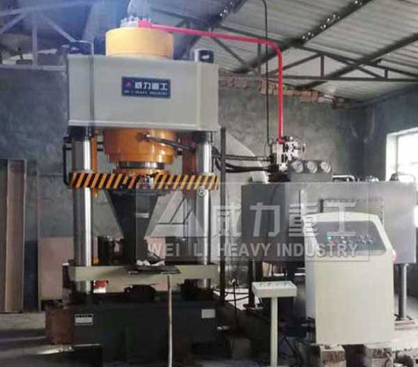 对于一些小型的哑铃配重块,可以将铁粉添加粘黏剂,通过模具,在315吨、400吨、500吨、630吨等小吨位的哑铃配重块成型液压机的压力下,一次冷压成型。重量重、体积大的哑铃哑铃头的加工则需要使用800吨、1000吨、1200吨、1500吨等吨位的哑铃配重块成型液压机热压成型。威力重工推荐先冷压再热压的工艺,先将铁粉压制成哑铃毛坯,然后将毛坯加热,进行二次加压,达到客户需要的密度,这种工艺投资少,效率高,工序少,密实度高,适合批量生产。
