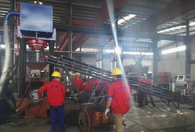 铁屑铁粉的回收利用需要将这些铁屑铁粉压制成快,压制的铁屑压块需要达到能承受冲撞强度,确保在进入炉膛不会溃散被吹入风筒。山东威力设计了一款铁屑压饼机,可以将铸铁屑、钢屑等金属碎屑通过高压直接冷压成各种尺寸和重量的圆柱饼块,降低回收再利用过程中的损耗,铁屑经压块后密度、重量增大,避免了因过于轻浮而被炉渣裹挟带走的重大流失。