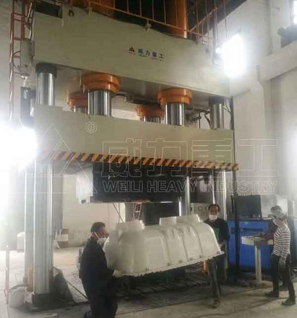 根据玻璃钢化粪池的材质、规格、厚度、工艺等,山东威力可以为客户定制生产630吨、800吨、1000吨、1200吨、1500吨、2000吨、2500吨等多种吨位的玻璃钢化粪池液压机。可以压制1立方、1.5立方、2立方、2.5立方、3立方等多种不同规格的玻璃钢化粪池,是一款加工玻璃钢化粪池的理想设备。