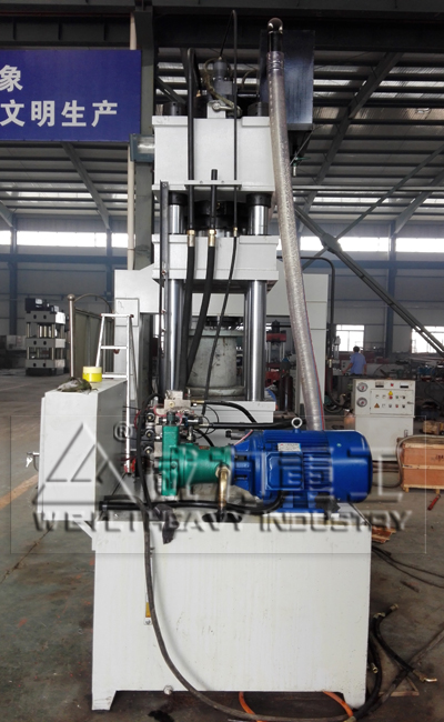 6、灭火器罐体成型液压机液压缸内存有较多气体时,可让液压缸在空载或轻载状态下,开展大行程反复运动,直到气体排尽;若液压缸上方配有排气装置,可放开排气阀螺钉排除油液中的气体。另外,应将造成气体混入的受损元件开展修正。