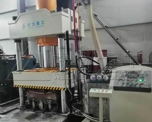 与玻璃钢复合材料化粪池配套的是玻璃钢复合材料化粪池封头,以合成树脂、玻璃纤维增强材料为原料,通过液压机设备进行模压成型的。威力重工设计生产了一款复合材料化粪池封头液压机,采用三梁四柱式结构,成型工艺与玻璃钢化粪池的成型工艺基本一样,是在高压下一次热模压成型。